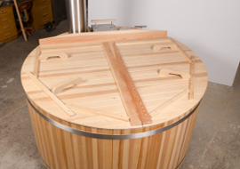 Dřevěné víko slouží jako kryt proti znečišťování vody a zároveň jako izolace pro její rychlý ohřev.