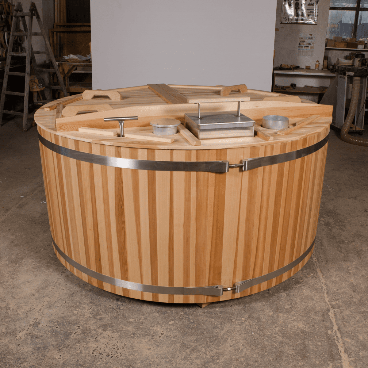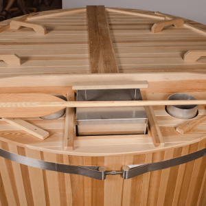 Samotný sud je vyroben z prvotřídního a do detailu opracovaného modřínového nebo borovicového dřeva a nerezových obručí. Dřevo ničím nenapouštíme ani nenatíráme – lépe pak dýchá a nedrží se na něm plísně ani houby. Nerezová lavička vám zajistí nekonečné hodiny pohodlí.