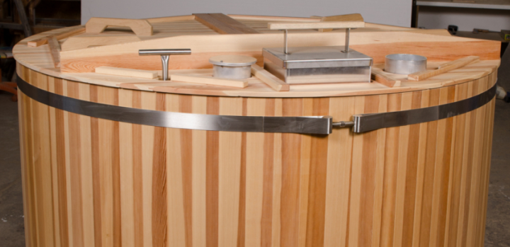 Samotný sud, víko a masivní schody – kvalitní, pečlivě opracované modřínové dřevo, průměr 200 cm, pohodlně pro 6 osob (při párty s přáteli až 8 osob). Součástí námi dodávaných sudů je také pádlo na míchání z kvalitního modřínového dřeva.
